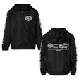Front, back and sleeve designs on black jacket
